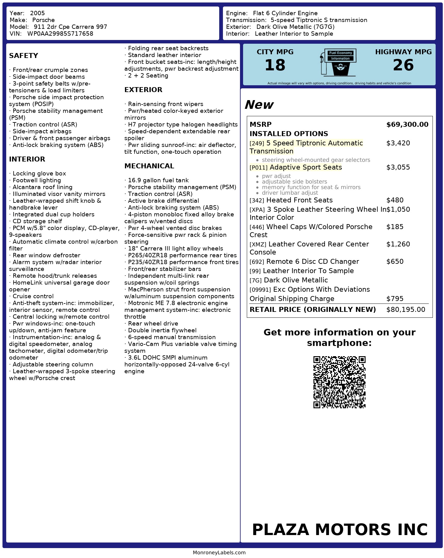 Plaza Motors site uses AI generated Vehicle Description technology for some vehicles, a program used to automatically generate vehicle descriptions for vehicles using the system information from the VIN decoder vehicle options and advises that the details may not be fully accurate. Please verify any queries with a sales person.