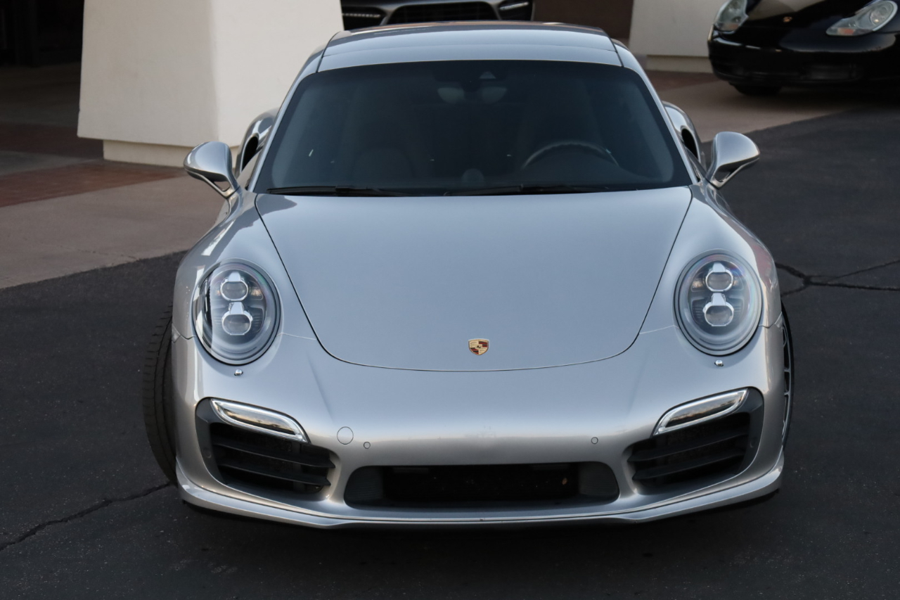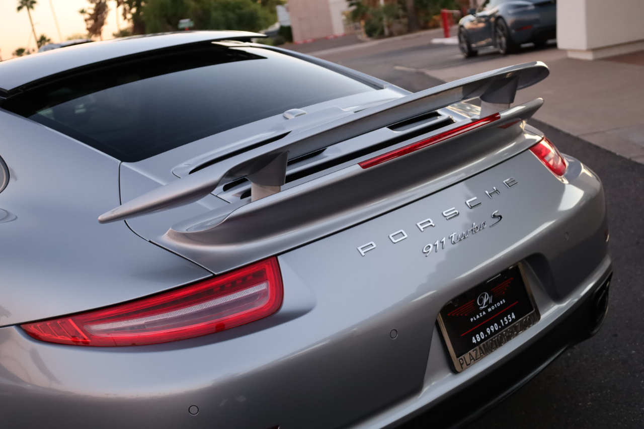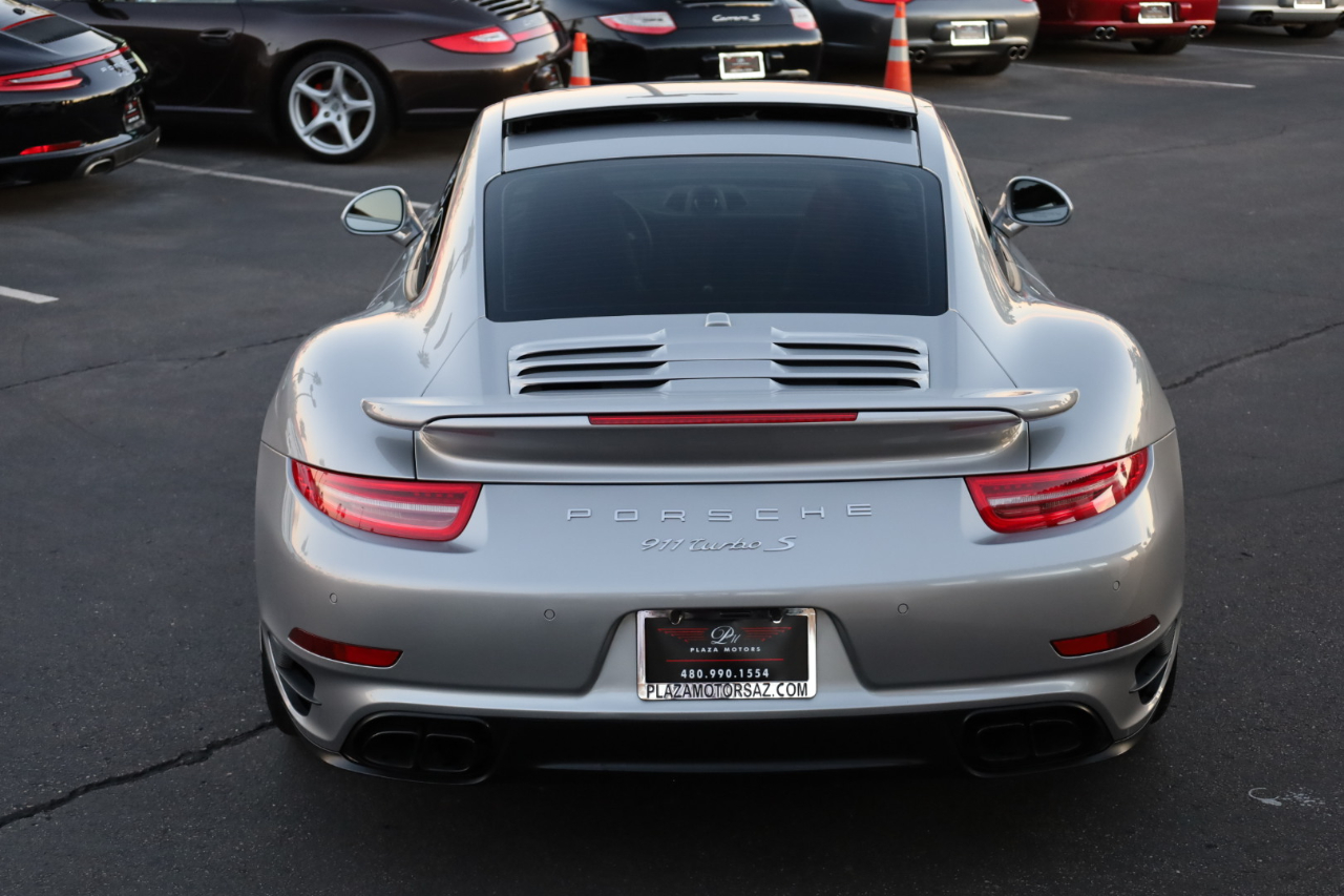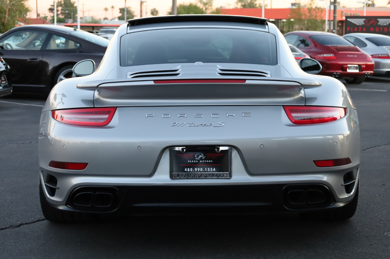 2014 Porsche 911 Turbo S. 3.8L Twin Turbo H-6 / 560 HP, 7-Speed PDK Automatic Transmission. GT Silver Metallic w/Espresso Full Natural Leather Interior w/Carbon Fiber Trim. Original MSRP $196,980. Nicely optioned with Navigation, Burmester High-End Surround Sound, SAT/HD Radio, Bluetooth, Streaming Audio, 14-Way Power Memory Seats, Heated Seats, Sport Design Steering Wheel, Porsche Crest in Headrest, Instrument Dials in White, Sport Chrono Package, PDCC, Fire Extinguisher, Light Design Package, Power Sunroof, Power Steering Plus, Gear Selector in Carbon Fiber, Center Console Trim in Leather, Porsche Entry Drive, Illuminated Door Sills in Carbon Fiber, Front and Rear Parking Sensors, LED Headlights w/PDLS, Ceramic Brakes, and 20 inch Turbo S Center Lock Alloy Wheels. Super clean Porsche. Clean Car Fax. Excellent service history listed in the Car Fax. Runs and drives great. We have Financing and Extended Warranties available. Please give us a call or visit our website at www.plazamotorsaz.com for more information.