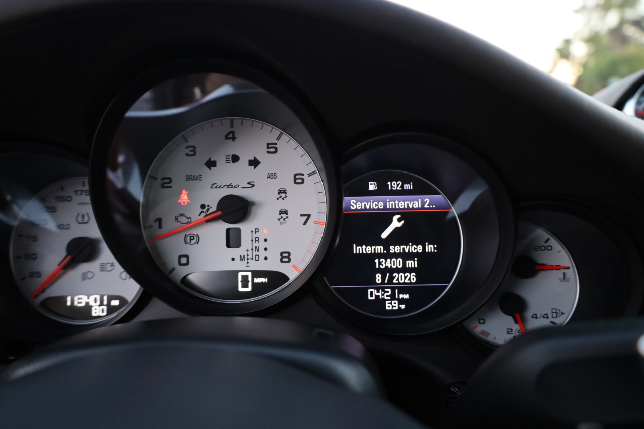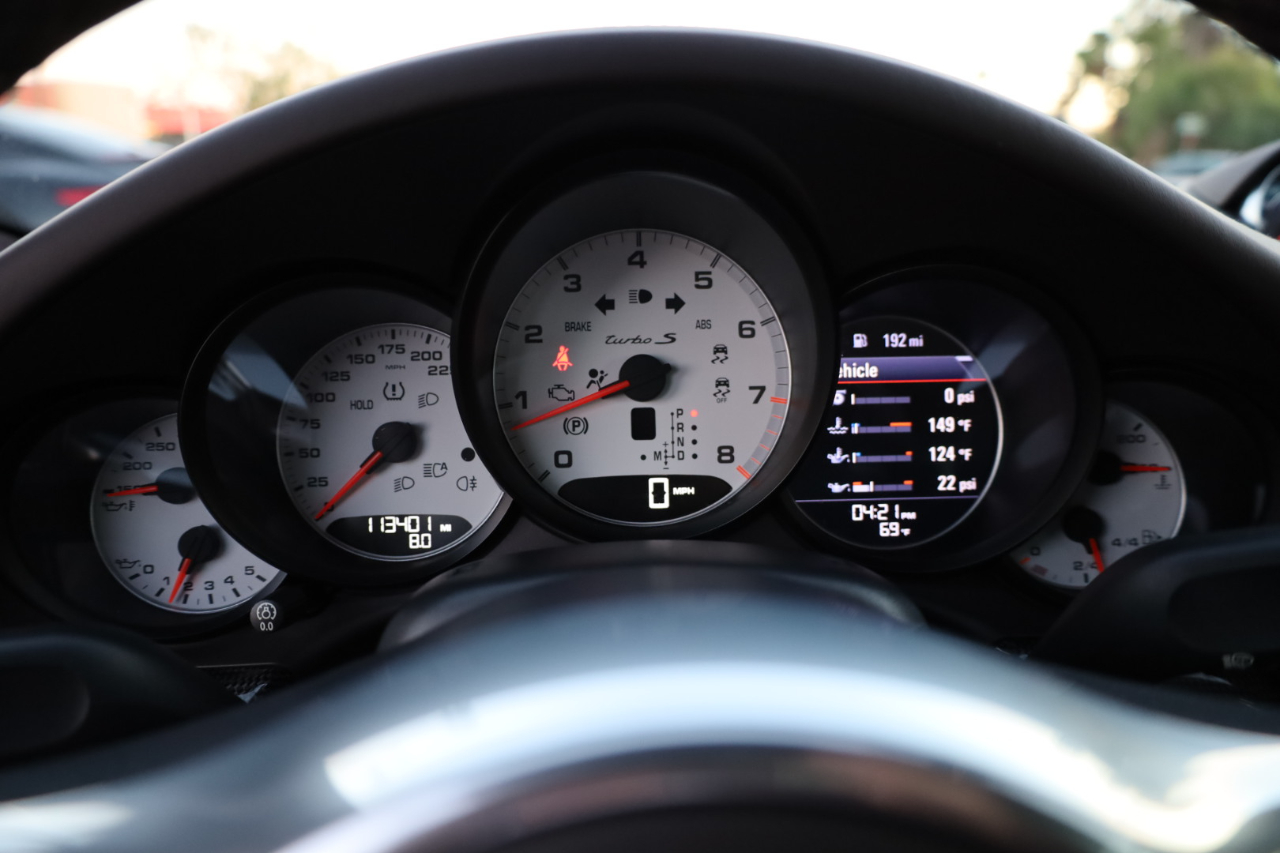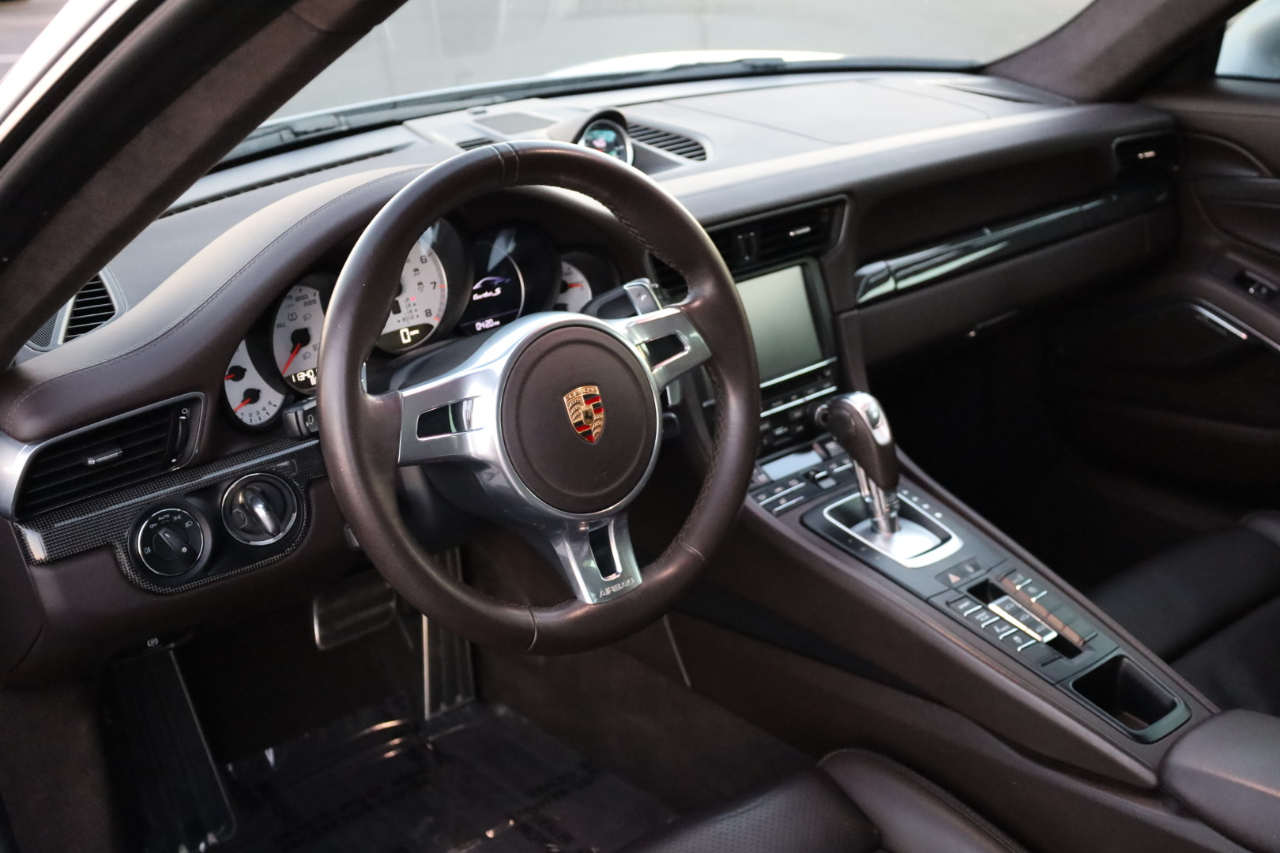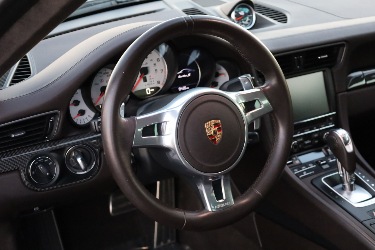 2014 Porsche 911 Turbo S. 3.8L Twin Turbo H-6 / 560 HP, 7-Speed PDK Automatic Transmission. GT Silver Metallic w/Espresso Full Natural Leather Interior w/Carbon Fiber Trim. Original MSRP $196,980. Nicely optioned with Navigation, Burmester High-End Surround Sound, SAT/HD Radio, Bluetooth, Streaming Audio, 14-Way Power Memory Seats, Heated Seats, Sport Design Steering Wheel, Porsche Crest in Headrest, Instrument Dials in White, Sport Chrono Package, PDCC, Fire Extinguisher, Light Design Package, Power Sunroof, Power Steering Plus, Gear Selector in Carbon Fiber, Center Console Trim in Leather, Porsche Entry Drive, Illuminated Door Sills in Carbon Fiber, Front and Rear Parking Sensors, LED Headlights w/PDLS, Ceramic Brakes, and 20 inch Turbo S Center Lock Alloy Wheels. Super clean Porsche. Clean Car Fax. Excellent service history listed in the Car Fax. Runs and drives great. We have Financing and Extended Warranties available. Please give us a call or visit our website at www.plazamotorsaz.com for more information.