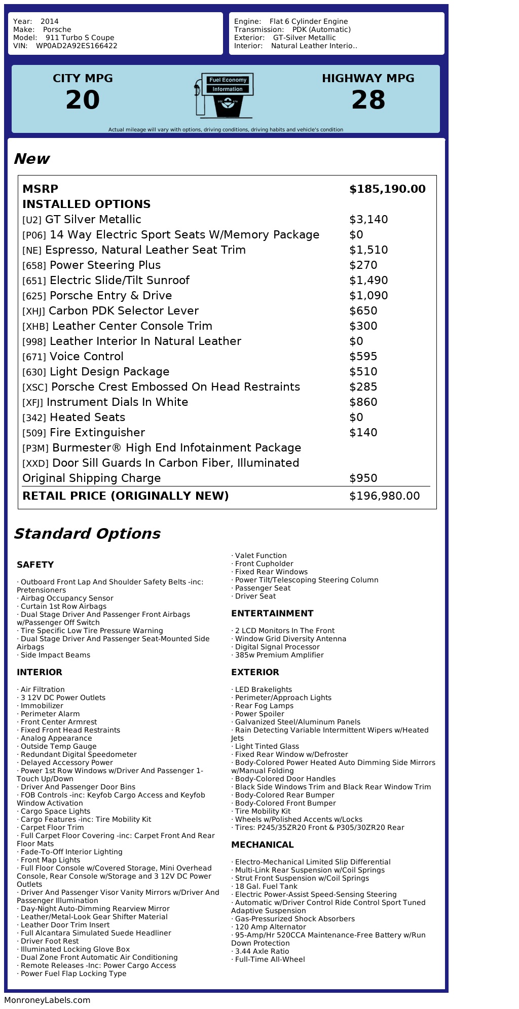 additional equipment [625] porsche entry & drive $1,090.00